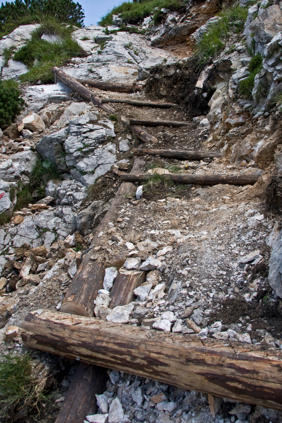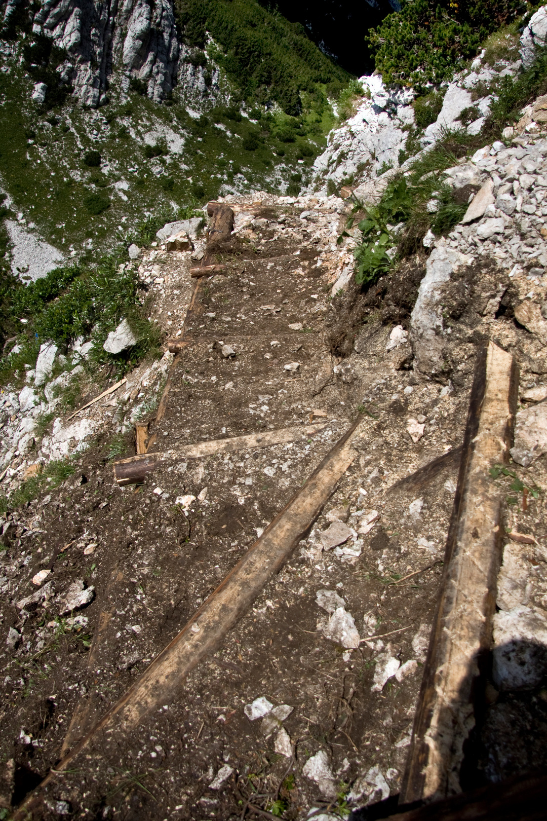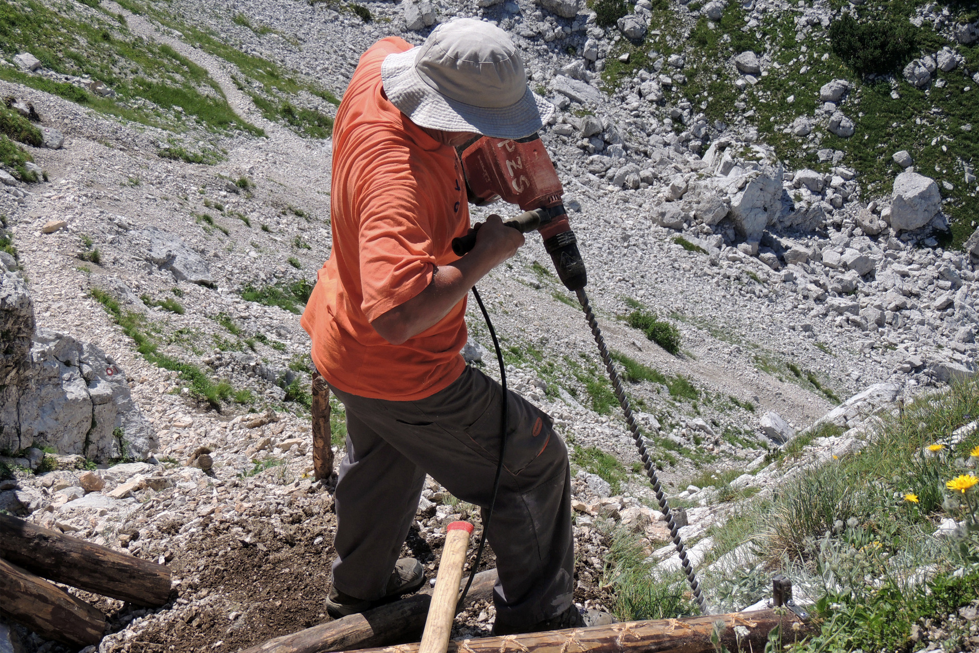 Naredili smo eno leseno lestev, več stopnic in erozijskih zaščit. Pot smo zavarovali tudi s stopnimi in oprijemalnimi klini.